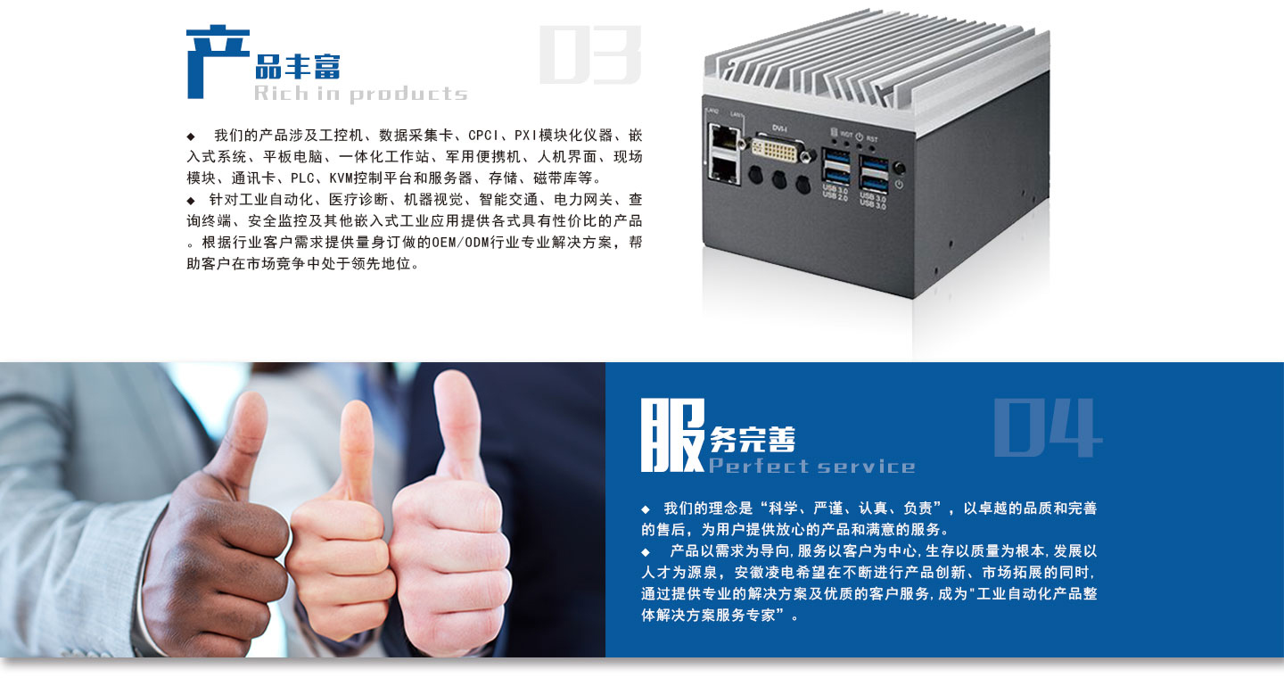 安徽凌電自動化設(shè)備有限公司,是坐落在西湖國際廣場的一家企業(yè)信用等級企業(yè),重質(zhì)量守合同誠信經(jīng)營單位。目前安徽凌電自動化設(shè)備有限公司是臺灣凌華(ADLINK)授權(quán)華東區(qū)代理商、新漢華東區(qū)代理商、海康威視機(jī)器視覺代理商、并經(jīng)銷MOXA,研華,超恩,阿普奇,集和誠,聯(lián)想等品牌的工業(yè)產(chǎn)品。擁有獨(dú)立品牌”凌電科技“。我們的產(chǎn)品涉及工控機(jī),數(shù)據(jù)采集卡,嵌入式視覺平臺,運(yùn)動控制,EtherCAT,CPCI,ATCA,PXIE模塊化儀器,平板電腦,加固便攜機(jī),車載電腦,服務(wù)器以及Ai機(jī)器視覺,邊緣計(jì)算,深度學(xué)習(xí),工業(yè)相機(jī),Ai智能相機(jī),鏡頭,光源等產(chǎn)品......廣泛應(yīng)用于新能源,半導(dǎo)體3c檢測,環(huán)保監(jiān)測,軌道交通,自動輔助駕駛,智能交通,智慧園區(qū),電力監(jiān)測,水質(zhì)監(jiān)測,礦山監(jiān)測,光電色選,視覺檢測,機(jī)器人,智能顯示設(shè)備,AI深度學(xué)習(xí),邊緣計(jì)算等行業(yè)